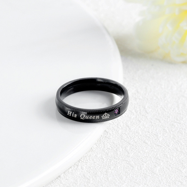 Cross-border wish new Herking HisQueen crown Queen titanium steel black couple ring couple ring